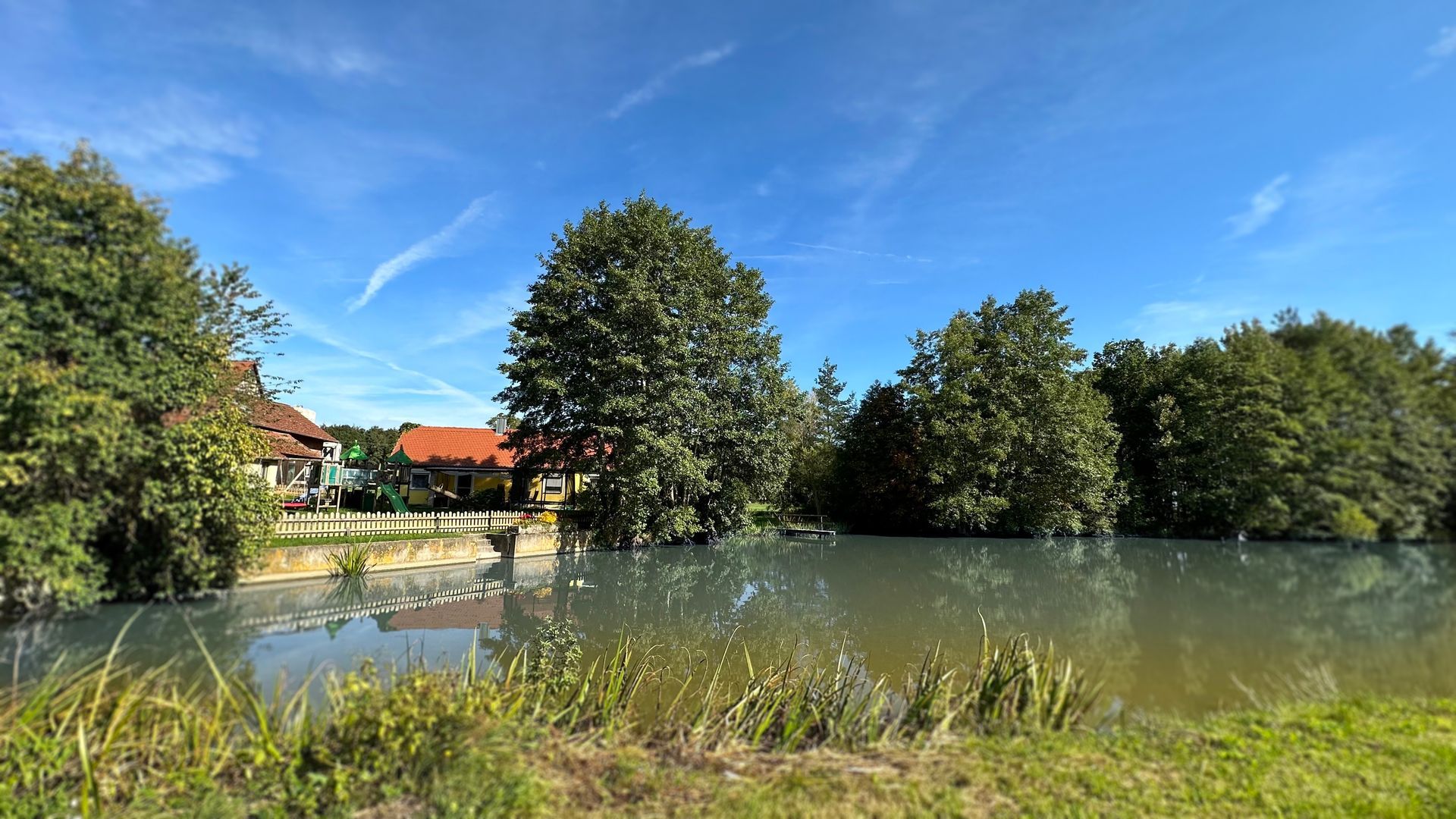 So geht es für die Kleinen z. B. in den Schweine- oder Hühnerstall, wo sie die Tröge füllen und die frischen Eier für Ihr Landfrühstück direkt bei den Hühnern einsammeln. Entdecken Sie auf dem Gelände den großzügigen Garten und unseren Hofweiher, der zu einem ausgiebigen Sonnenbad einlädt. Ein schattiges Plätzchen bietet Ihnen die Terrasse mit Sonnensegel vor dem Haus.